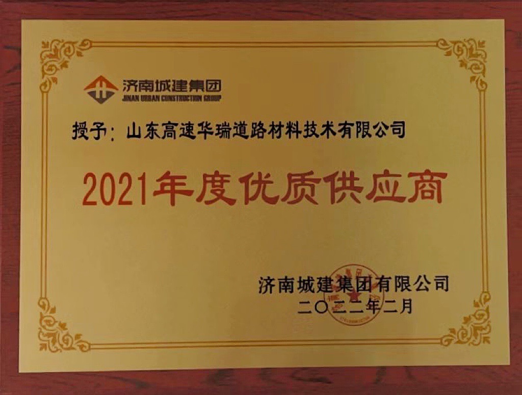 近日,山東高速華瑞公司榮獲濟(jì)南城建集團(tuán)有限公司“2021年度優(yōu)秀供應(yīng)商”稱號。