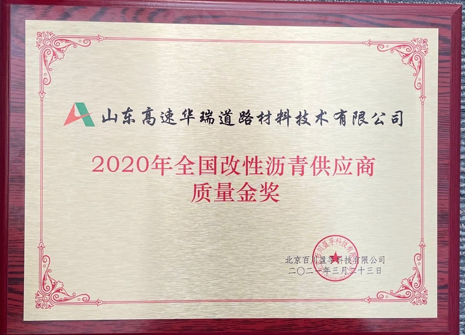 此次華瑞公司榮獲“2020年全國改性瀝青供應(yīng)商質(zhì)量金獎”,是行業(yè)各界和合作伙伴對華瑞公司產(chǎn)品品質(zhì)、優(yōu)質(zhì)服務(wù)和綜合實力的認(rèn)可與肯定。華瑞公司將致力于為廣大客戶提供更加優(yōu)質(zhì)、便捷和高效的服務(wù),努力將華瑞公司打造為全國瀝青貿(mào)易商“山東加工廠”,不斷提升華瑞公司行業(yè)影響力和品牌形象。