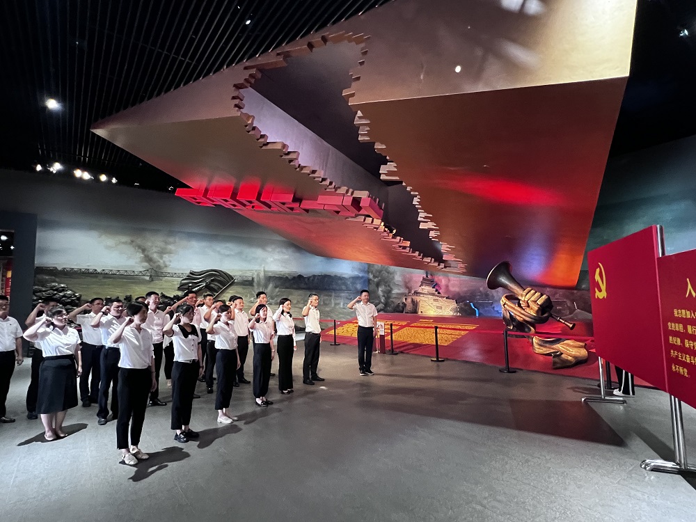 全體黨員在講解員的引導(dǎo)下,了解濟南戰(zhàn)役的全過程,回顧解放戰(zhàn)爭波瀾壯闊的歷史進程,從“合戰(zhàn)博弈 齊魯硝煙”到“八天八夜 鏖戰(zhàn)古城”,再從“接管濟南 泉城新生”到“烈士忠魂 日月同輝”,一個個生動形象的故事,令大家深刻感受到了一代又一代共產(chǎn)黨人艱苦奮斗、不怕犧牲的革命精神,和不忘初心、奮勇前進的歷史擔(dān)當(dāng)。參觀結(jié)束后,全體黨員面對莊嚴(yán)的黨旗重溫入黨誓詞,并一同前往烈士陵園進行祭掃。