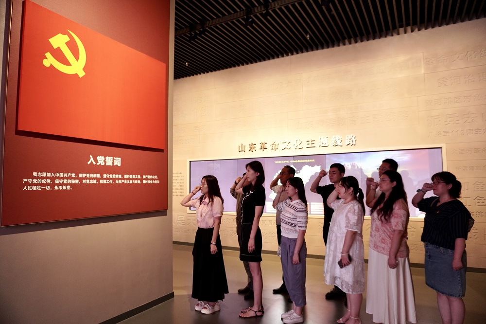 6月29日,華瑞公司黨支部和建材集團業(yè)務(wù)一線黨支部聯(lián)合開展“迎七一”革命傳統(tǒng)教育活動,在山東省博物館山東近現(xiàn)代歷史文化展廳,雙方黨員、積極分子和青年團員們了解了山東百年近代風云史,切身感受到革命先輩們不怕犧牲、浴血奮戰(zhàn)的革命信念,領(lǐng)悟先輩們無私奉獻的愛國情懷。大家在黨史中汲取營養(yǎng)、打牢根基,接受了一次革命歷史的精神洗禮,激發(fā)了愛國愛黨情懷。