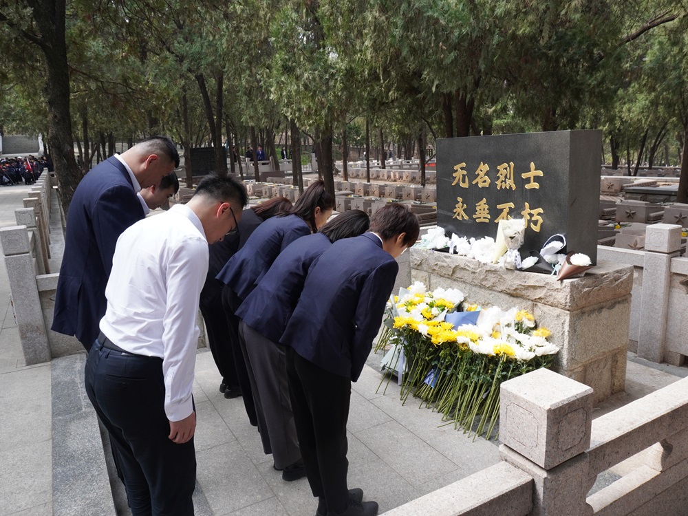 清明節(jié)前夕,公司黨支部組織黨員干部前往濟(jì)南市英雄山烈士陵園開展祭奠英烈活動(dòng)。烈士陵園蒼松勁挺、莊嚴(yán)肅穆,帶著歲月痕跡的烈士墓碑經(jīng)歷了多年風(fēng)雨侵襲,碑文已多有斑駁,大家認(rèn)真清理散落的樹葉和雜草、細(xì)心擦拭墓碑,在無名烈士紀(jì)念碑前,他們垂手肅立、靜心虔誠,共同鞠躬悼念。